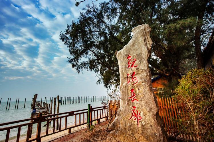 藏海:一路走来不见海,到了花园门口甚至进了大门仍不见海,一堵高墙挡住了视线,偶回首,园门内侧楣上高悬“藏海”匾额赫然入目,顿时领悟藏海的意蕴,转出月洞门,突然“海阔天空”,大海奔腾而至,这种先藏后露的手法,收到了惊奇的效果。